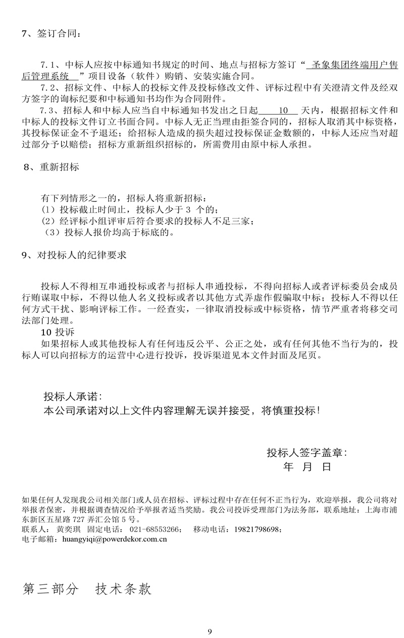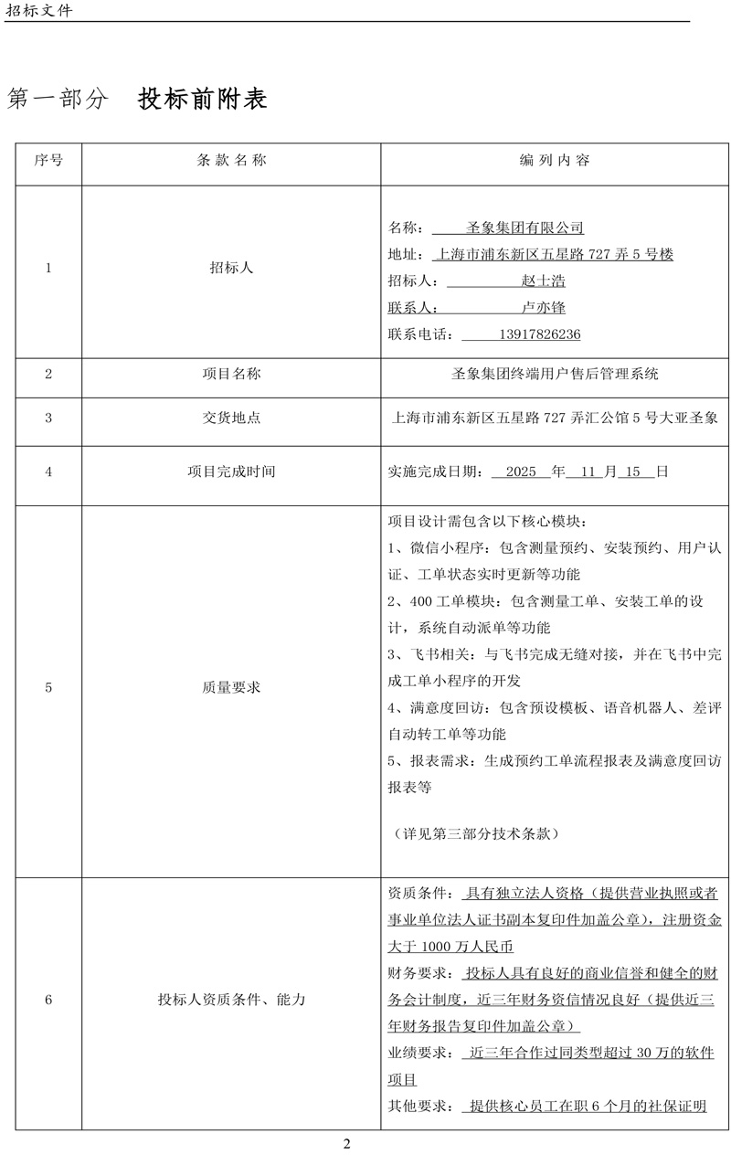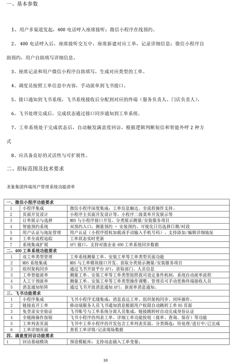 圣象集团有限公司圣象集团终端用户售后管理系统招标文件