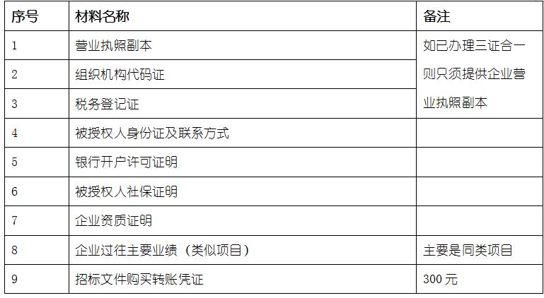 2、 凡有意向参加投标者,请在上述期间内按下表提供报名资料,相关证明文件的原件如无法提供原件则提供复印件加盖公司公章,投标人须将上述资料的扫描件发邮件至招标联系人处进行报名。