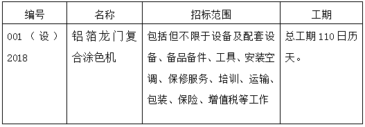 江苏大亚新型包装材料有限公司铝箔龙门复合涂色机招标公告