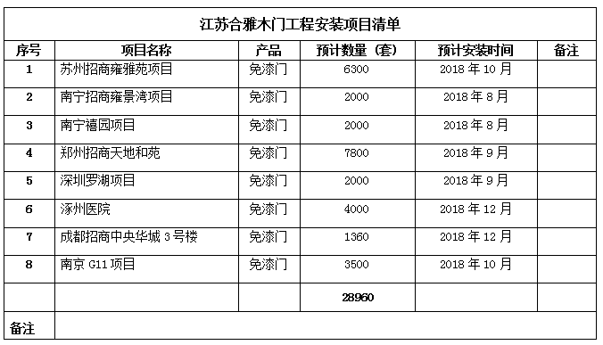 本招标项目 2018年木门工程安装项目 (项目名称)已批准建设,招标人为 江苏合雅木门有限公司 ,建设资金来自 自筹 (资金来源)。项目已具备招标条件,现进行公开招标,特邀请有兴趣的潜在投标人(以下简称申请人)提出资格预审申请。