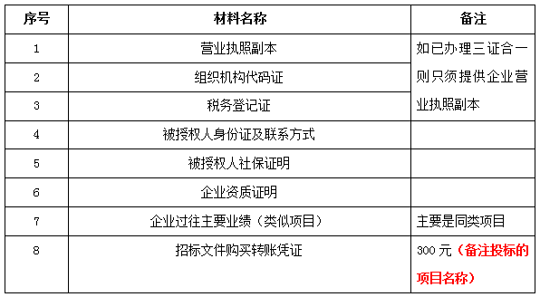 注:以上材料发送至招标人邮箱必须注明投标的项目名称。