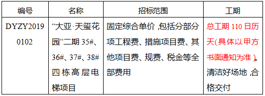 “大亚·天玺花园”二期35#、36#、37#、38#四栋高层电梯项目招标公告