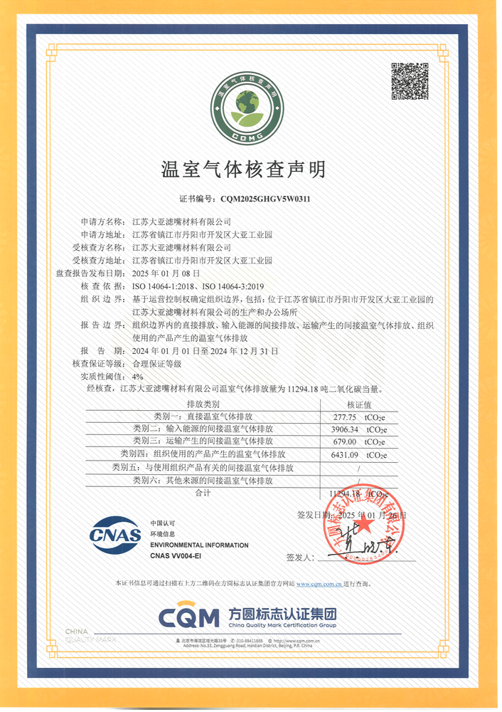 江苏大亚滤嘴材料有限公司2024年度温室气体排放核查报告 公示