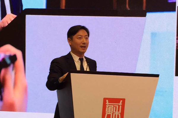 大亚科技集团有限公司董事局主席、总裁、大亚圣象家居股份有限公司董事长陈晓龙出席了本次盛会,并以《整合全球资源、服务全球市场》为主题作主旨演讲。