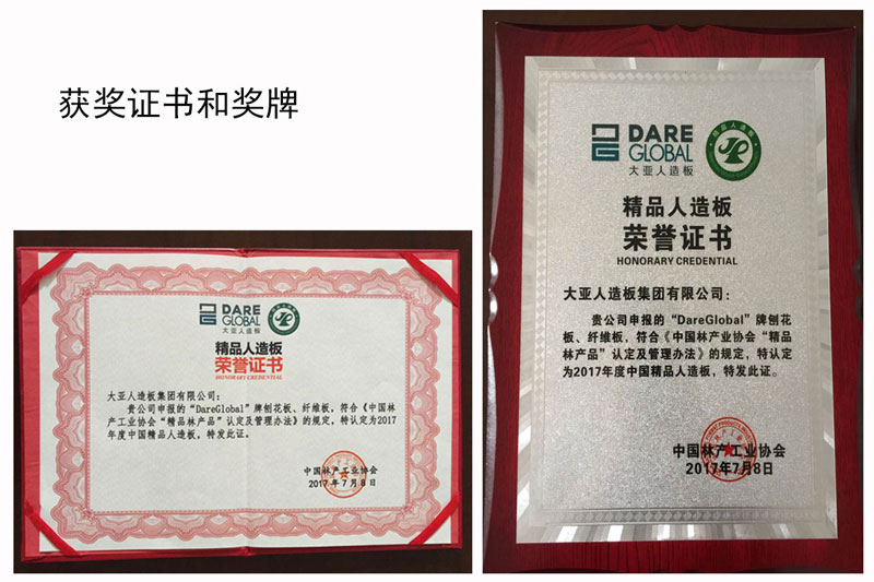 “DareGlobal”牌纤维板、刨花板荣获“十大精品人造板”称号