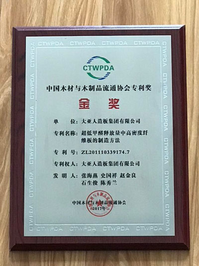 会议最后的颁奖盛典点燃了会议的气氛,大会主办方分别颁发了中国地板国家品牌、中国地板基材优应商、地板及人造板专利奖等多项重磅荣誉,对为中国地板和人造板行业做出突出贡献的企业和个人做出了表彰。大亚人造板集团作为行业龙头企业,获评中国地板基材优秀供应商,另有一项专利获得金奖称号。