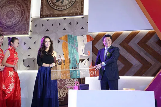 圣象集团总裁陈建军和卢靖姗用钉地板的形式拼出了圣象的崭新七彩象标。陈建军总裁在现场互动时表示,未来消费者需求是多样化的,我们的初心是从消费者出发,我们在新时代下的历史任务就是从客厅出发,进行产品的全新系列升级。