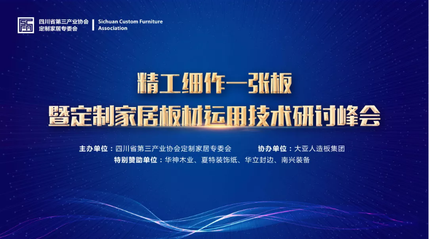 11月8日,“精工细作一张板暨定制家居板材应用技术研讨峰会”在四川成都川投国际酒店隆重举行。此次峰会由四川省第三产业协会定制家居专委会主办,大亚人造板集团协办,成都市华神木业有限公司等企业特别赞助,旨在提升川派定制家居企业产品品质,增进定制家居产业链各企业之间的交流与合作,来自相关行业代表近400人出席,新浪家居网进行了全程直播。
