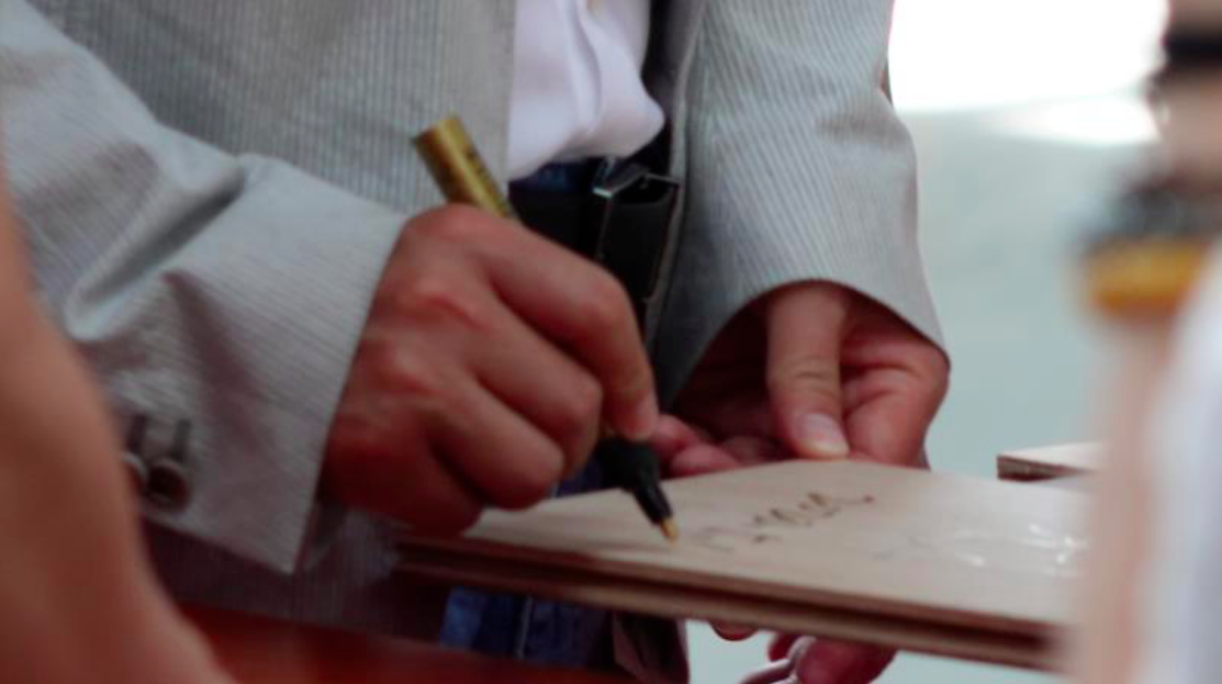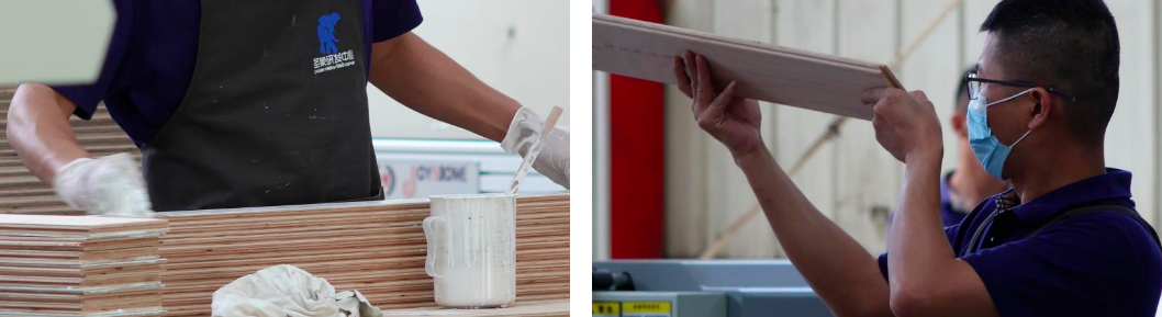 之后,董事长和嘉宾们一起见证新实木实验工厂首片样板下线,并在首片样板上签名,对新实验工厂寄予厚望。