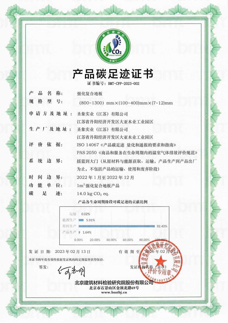 圣象实业(江苏)有限公司产品碳足迹证书